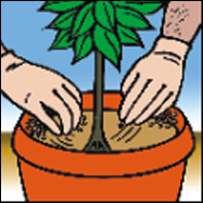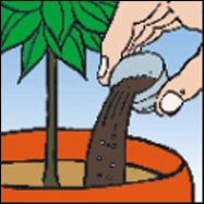 Before applying G-5 granules in pot, remove a thin layer of soil from post soil surface